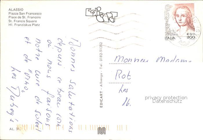old postcard ALAssIO Savona Liguria IT Piazza San Francesco postalisch gelaufen Erhaltung siehe scans