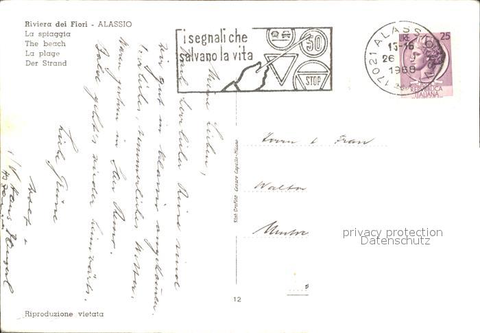 old postcard ALAssIO Savona Liguria IT Riviera dei Fiori postalisch gelaufen Erhaltung siehe scans
