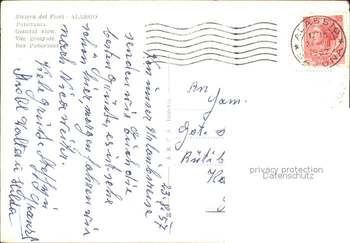 old postcard ALAssIO Savona Liguria IT Riviera dei fiori postalisch gelaufen Erhaltung siehe scans