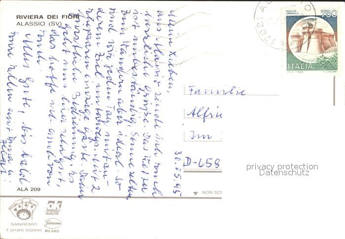 old postcard ALAssIO Savona Liguria IT Riviera dei Fiori postalisch gelaufen Erhaltung siehe scans
