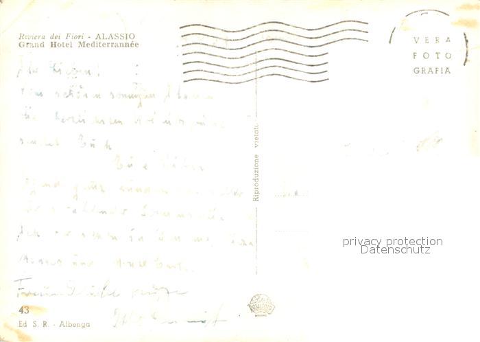 13527521 ALAssIO Savona Liguria IT Riviera dei Fiori Grand Hotel Mediterranee postalisch gelaufen Erhaltung siehe scans [WerneD78] old postcard Wern Katcode 11240