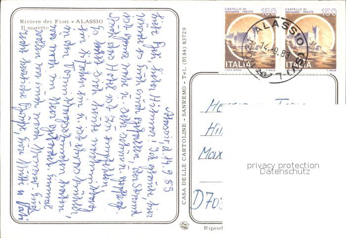 old postcard ALAssIO Savona Liguria IT Riviera dei Fiori Il Muretto postalisch gelaufen Erhaltung siehe scans