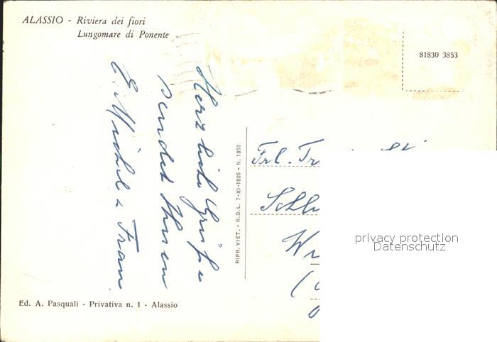 old postcard ALAssIO Savona Liguria IT Riviera dei fiori Lungomare di Ponente postalisch gelaufen Erhaltung siehe scans
