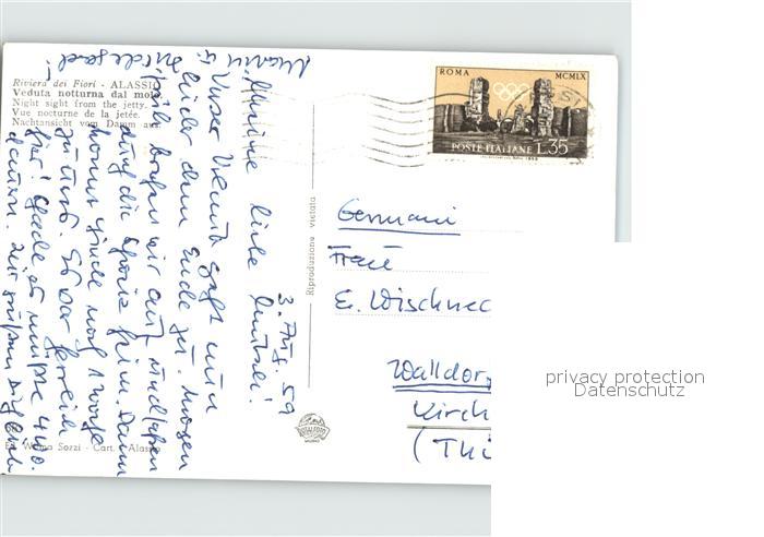 old postcard ALAssIO Savona Liguria IT Riviera dei fiori postalisch gelaufen Erhaltung siehe scans