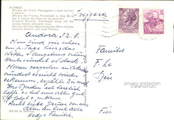 old postcard ALAssIO Savona Liguria IT Seepromenade postalisch gelaufen Erhaltung siehe scans