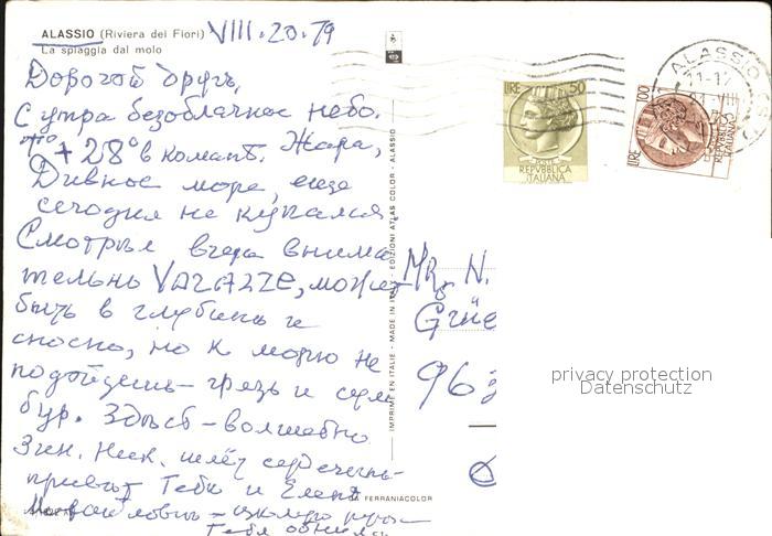 old postcard ALAssIO Savona Liguria IT Spiaggia dal molo postalisch gelaufen Erhaltung siehe scans