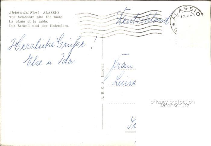 old postcard ALAssIO Savona Liguria IT Spiaggia e Molo Strand Mole postalisch gelaufen Erhaltung siehe scans