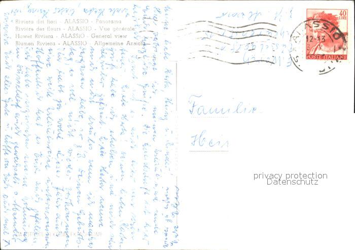 old postcard ALAssIO Savona Liguria IT Spiaggia Panorama postalisch gelaufen Erhaltung siehe scans