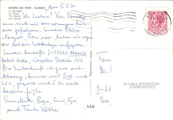 old postcard ALAssIO Savona Liguria IT Spiaggia Strand postalisch gelaufen Erhaltung siehe scans