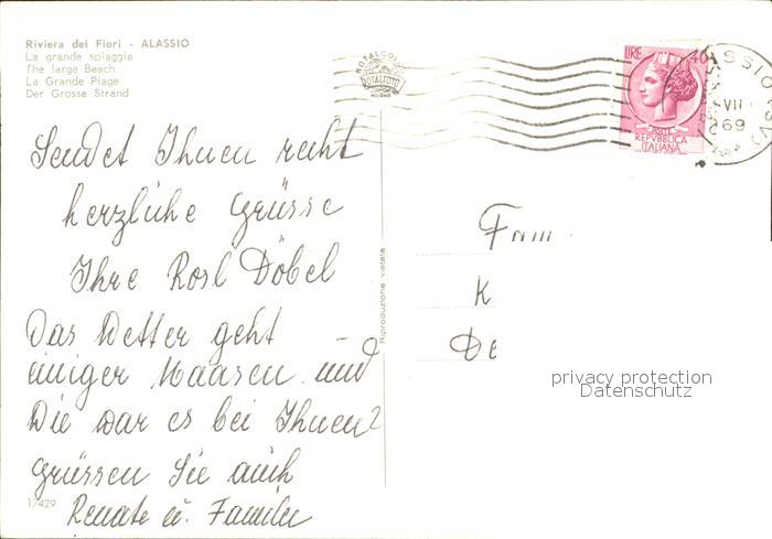 old postcard ALAssIO Savona Liguria IT Spiaggia Strand postalisch gelaufen Erhaltung siehe scans