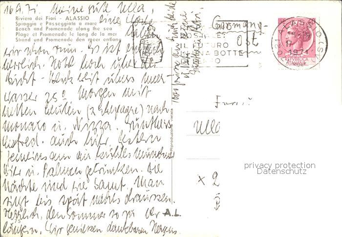 old postcard ALAssIO Savona Liguria IT Spiaggio e Passeggiata a mare postalisch gelaufen Erhaltung siehe scans