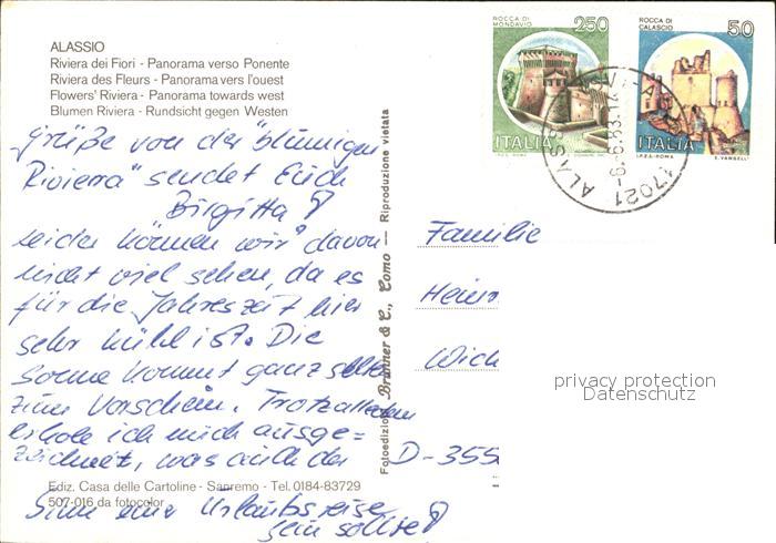 old postcard ALAssIO Savona Liguria IT Stadtansicht postalisch gelaufen Erhaltung siehe scans