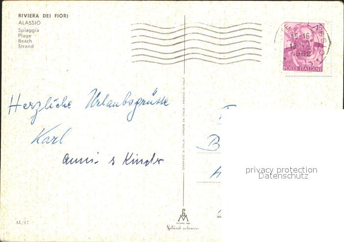 old postcard ALAssIO Savona Liguria IT Strand postalisch gelaufen Erhaltung siehe scans