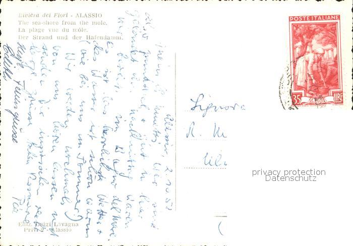 old postcard ALAssIO Savona Liguria IT Strand Hafendamm postalisch gelaufen Erhaltung siehe scans