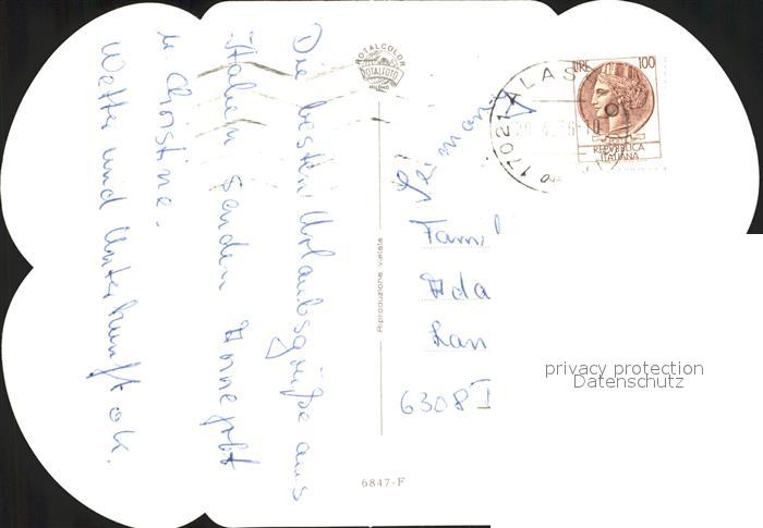 old postcard ALAssIO Savona Liguria IT Strand Kapelle Rosenbusch postalisch gelaufen Erhaltung siehe scans