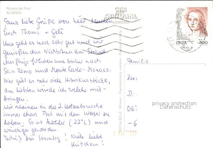 old postcard ALAssIO Savona Liguria IT Strand Kapelle postalisch gelaufen Erhaltung siehe scans