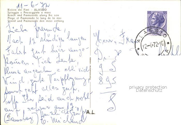 old postcard ALAssIO Savona Liguria IT Strand Meer postalisch gelaufen Erhaltung siehe scans