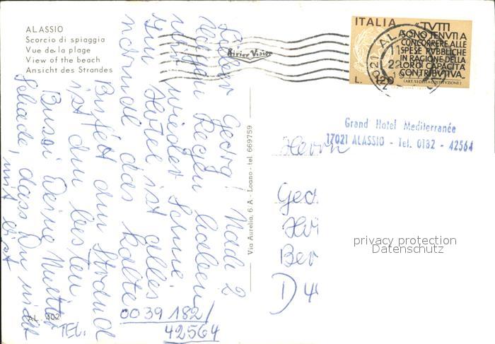 old postcard ALAssIO Savona Liguria IT Strandpromenade postalisch gelaufen Erhaltung siehe scans