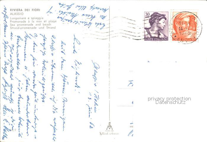 old postcard ALAssIO Savona Liguria IT Strandpromenade postalisch gelaufen Erhaltung siehe scans
