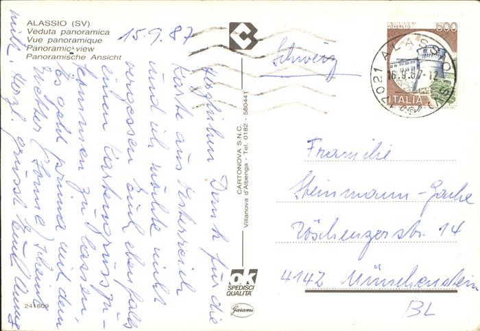 old postcard ALAssIO Savona Liguria IT Veduta panoramica Spiaggia postalisch gelaufen Erhaltung siehe scans