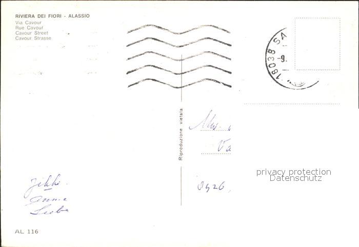 old postcard ALAssIO Savona Liguria IT Via Cavour postalisch gelaufen Erhaltung siehe scans