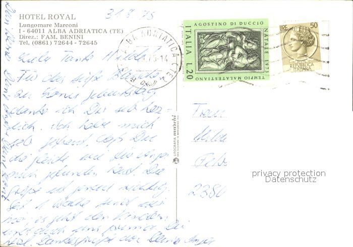 old postcard Alba Adriatica Hotel Royal postalisch gelaufen Erhaltung siehe scans