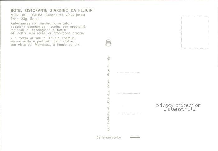 Alba Adriatica Restaurant Giardino da Felicin Monforte d`Alba postalisch nicht gelaufen Erhaltung siehe scans