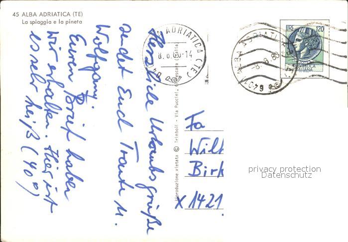 old postcard Alba Adriatica Spiaggia e la pineta Strand postalisch gelaufen Erhaltung siehe scans
