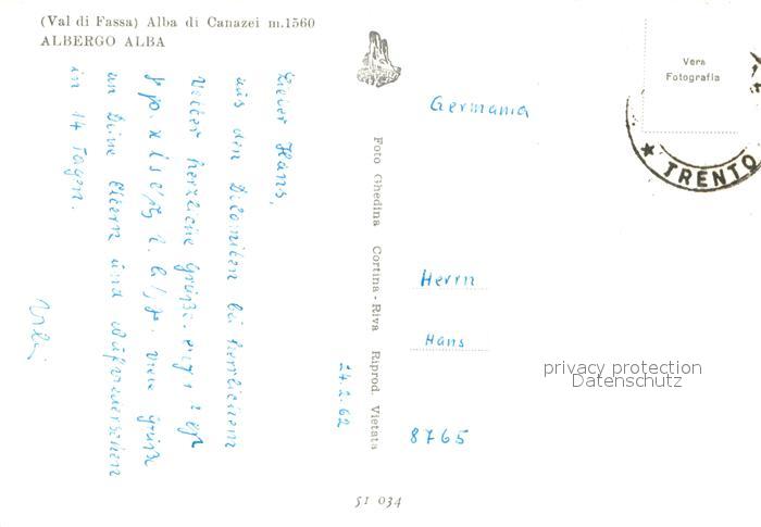 73740509 Alba di Canazei 1560m Dolomiti Albergo Alba postalisch gelaufen Erhaltung siehe scans [WerneD78] old postcard Wern Katcode 11240