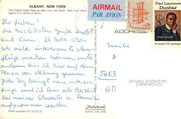 73005753 old postcard Albany New York Empire State Plaza and Capitol postalisch gelaufen Erhaltung siehe scans [WerneD78] KatCode: 14140340000000
