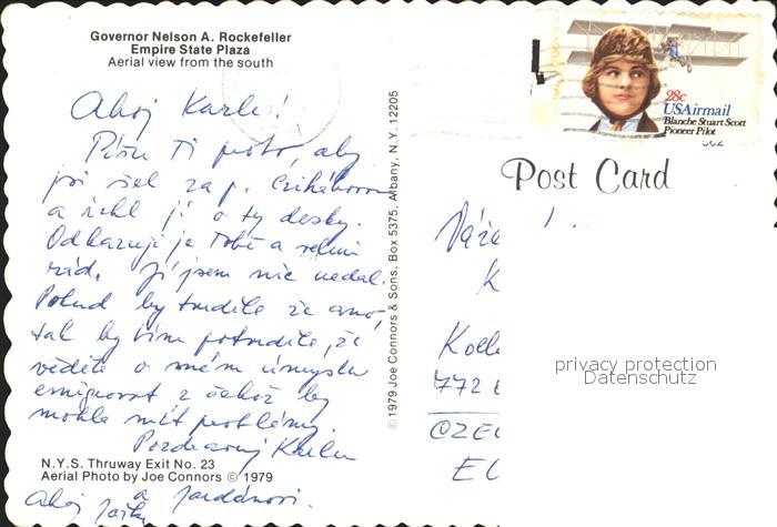72069176 old postcard Albany New York Governor Nelson a. Rockefeller Empire Stat Plaza postalisch gelaufen Erhaltung siehe scans KatCode: 14140340000000