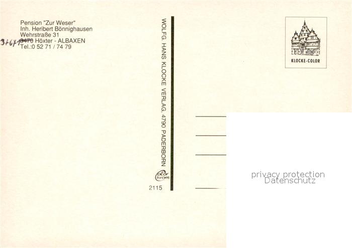73716129 Albaxen Pension Zur Weser postalisch nicht gelaufen Erhaltung siehe scans [WerneD78] KatCode: 11110005762020