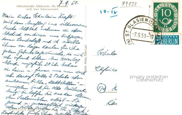 73821822 alte Postkarte Albbruck St. Blasien Albtalstrasse Durchblick vom II auf III Tunnel postalisch gelaufen Erhaltung siehe scans [IrynaD87] KatCode: 11110008337002