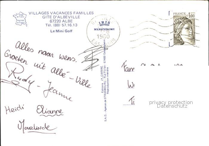 11905062 carte postale Albe Villages Vacances Gite d`Alberville Minigolf postalisch gelaufen KatCode: 11170067567003