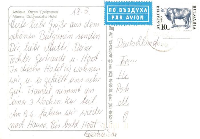 old postcard Albena BG Dobroudzha Hotel postalisch gelaufen Erhaltung siehe scans [FriedD77]