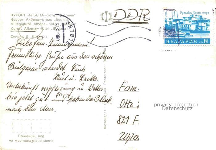 74044207 old postcard Albena BG Hotel Borjana postalisch gelaufen Erhaltung siehe scans [WerneD78] KatCode: 11090