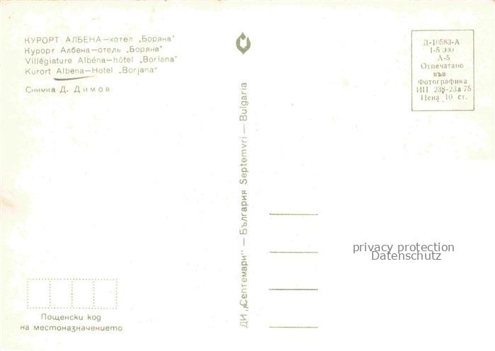 74095687 Albena BG Hotel Borjana postalisch nicht gelaufen Erhaltung siehe scans [WerneD78] KatCode: 11090