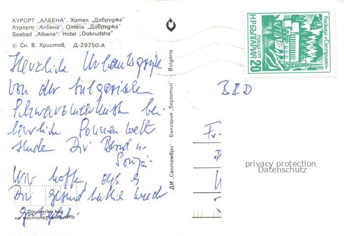 74040337 old postcard Albena BG Hotel Dobruschda postalisch gelaufen Erhaltung siehe scans [IrynaD87] KatCode: 11090