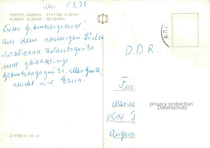 74029411 old postcard Albena BG Hotel Ferienanlage Strand am Schwarzen Meer postalisch gelaufen Erhaltung siehe scans [FriedD77] KatCode: 11090