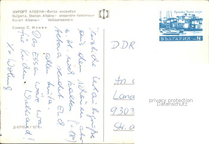 old postcard Albena Bulgarien Kurort Folklore postalisch gelaufen Erhaltung siehe scans