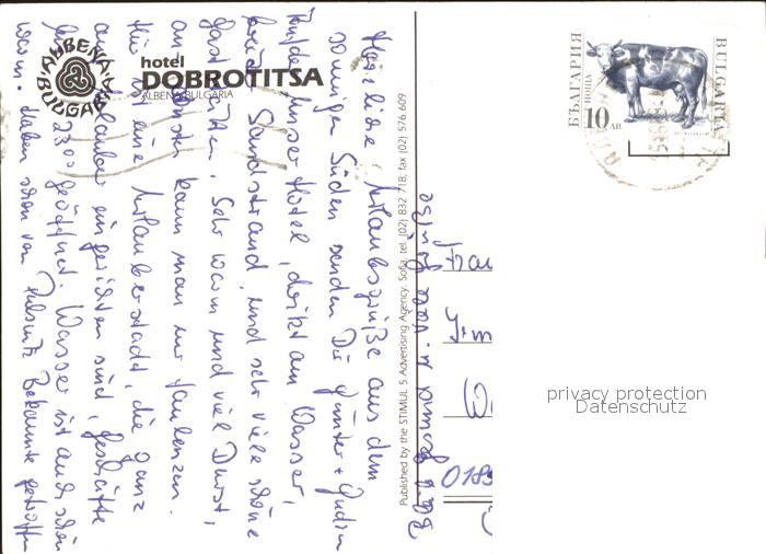 old postcard Albena Hotel Dobrotitsa postalisch gelaufen Erhaltung siehe scans