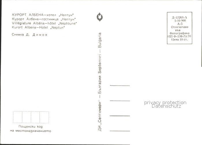 Albena Hotel Neptun postalisch nicht gelaufen Erhaltung siehe scans