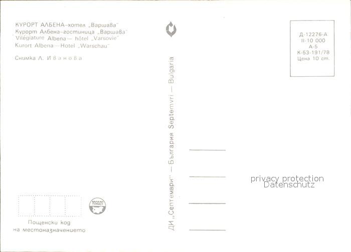 Albena Hotel Warschau postalisch nicht gelaufen Erhaltung siehe scans