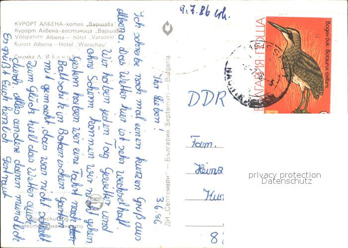 old postcard Albena Hotel Warschau postalisch gelaufen Erhaltung siehe scans