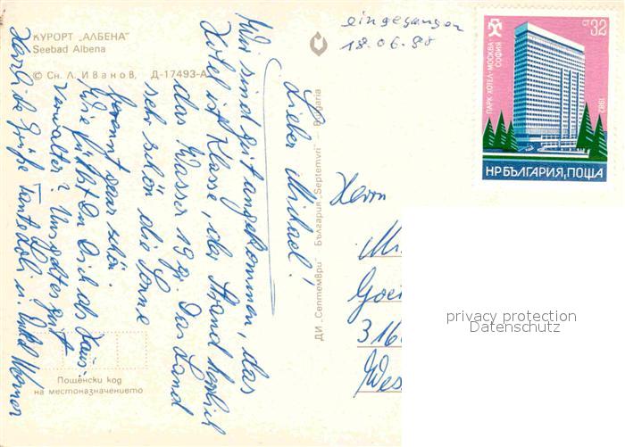 old postcard Albena Strand Hotel postalisch gelaufen Erhaltung siehe scans [AndreD76]