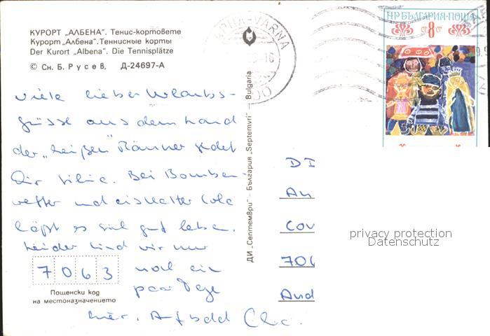 old postcard Albena Tennisplaetze Hotelkomplex postalisch gelaufen Erhaltung siehe scans
