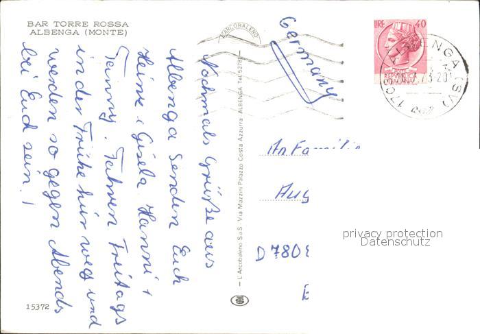 old postcard Albenga Bar Torre Rossa postalisch gelaufen Erhaltung siehe scans