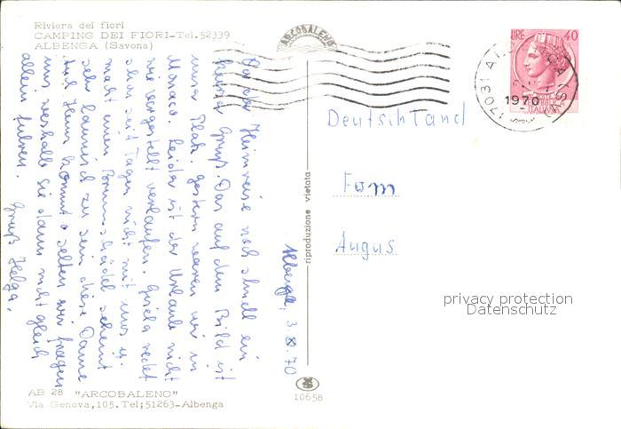 old postcard Albenga Camping dei Fiori Strand postalisch gelaufen Erhaltung siehe scans