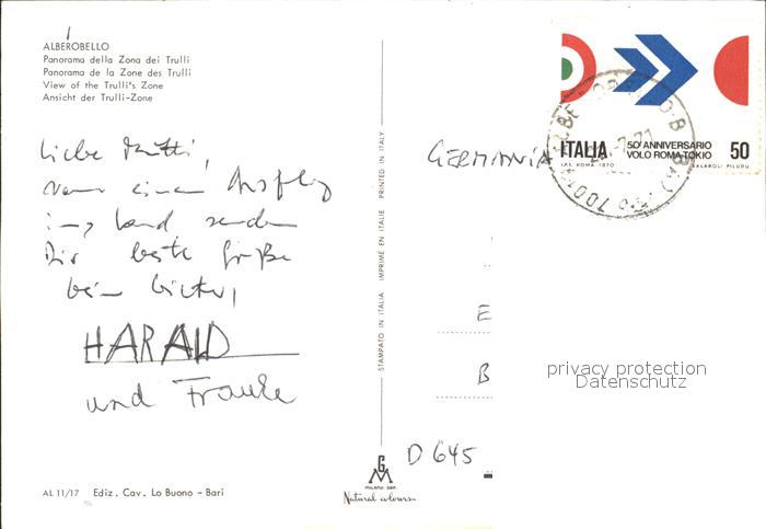 old postcard Alberobello Panorama della Zona dei Trulli postalisch gelaufen Erhaltung siehe scans