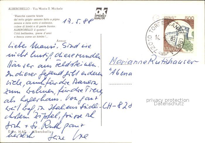 old postcard Alberobello Via Monte S Michele postalisch gelaufen Erhaltung siehe scans